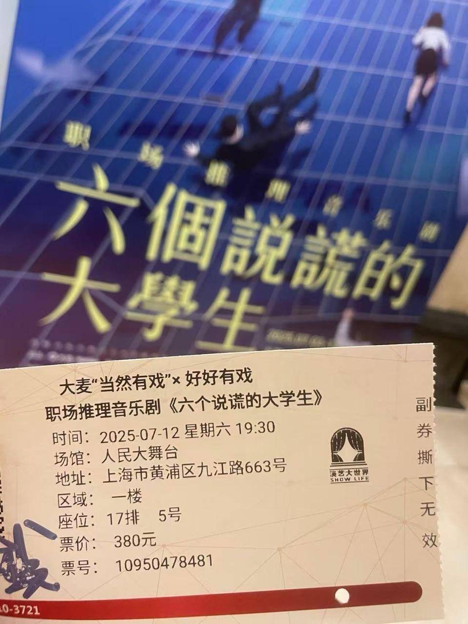 正因如此,朱球球看剧经常会“多刷”。 每一轮有白举纲出演的《人间失格》,她都不会缺席。其中《人间失格》第100场,是她印象最深最喜爱的剧场演出之一。《阿波罗尼亚》《辛吉路的画材店》《#0528》等小剧场演出她都看过很多遍。2025年的新戏音乐剧《六个说谎的大学生》,她也已经在上海看过两遍。