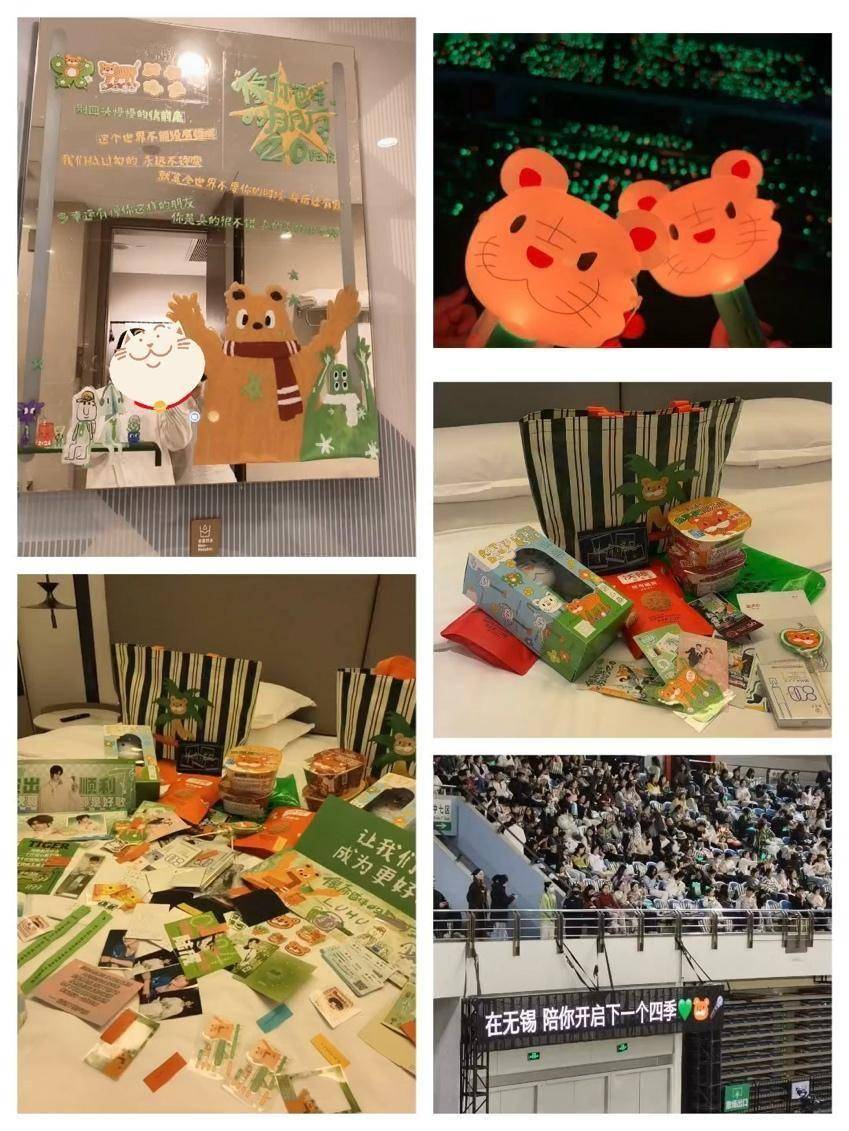 尊享套票带来的现场体验,远超梓桑和好友期待。套餐内的酒店和演出场馆之间,仅步行几分钟的距离,不仅酒店大堂专门布置了陆虎的人形立牌供粉丝打卡,主题房间内也随处可见陆虎的贴纸和歌词。