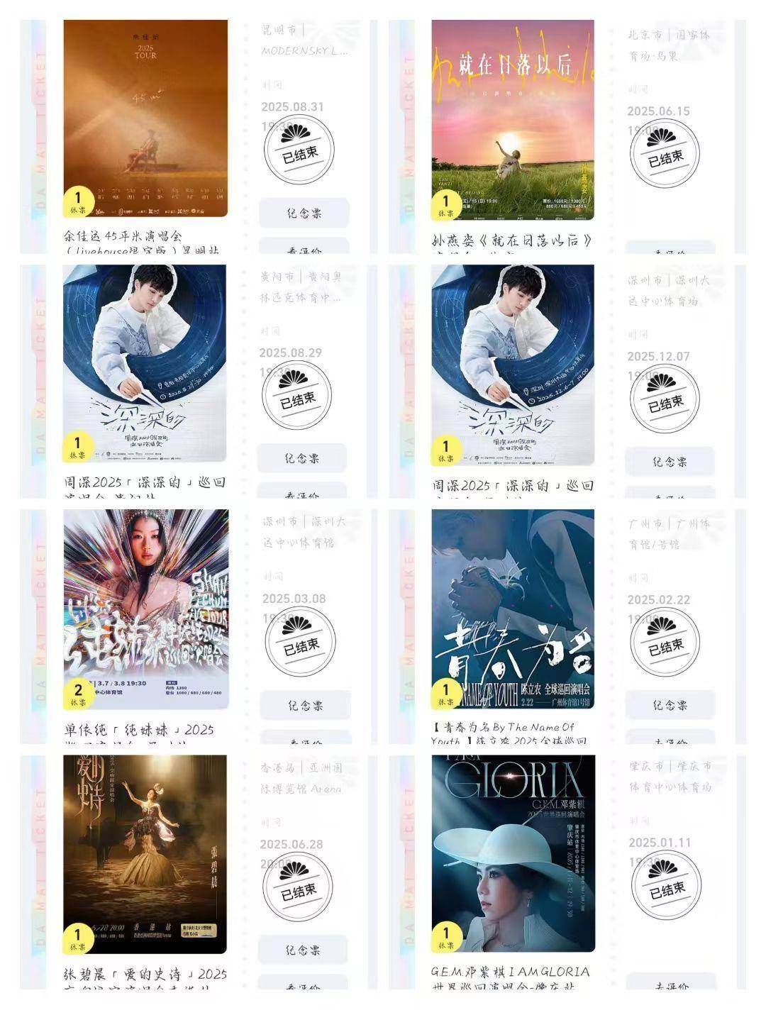 对梓桑来说,好友、家人和男友都是她的演出搭子。梓桑曾在西安陪着妈妈和姑姑一起去看张信哲的演唱会。那是两位长辈一次看线下演唱会,在现场,梓桑看到她们眼里有平日见不到的闪烁。“演出结束后,我用大麦VIP会员积分兑换了纪念票根送给妈妈和姑姑,她们拿到后特意珍藏了起来。”